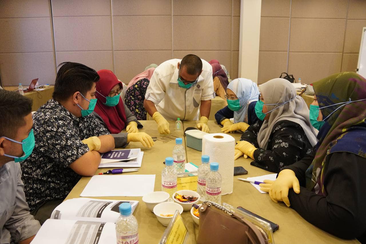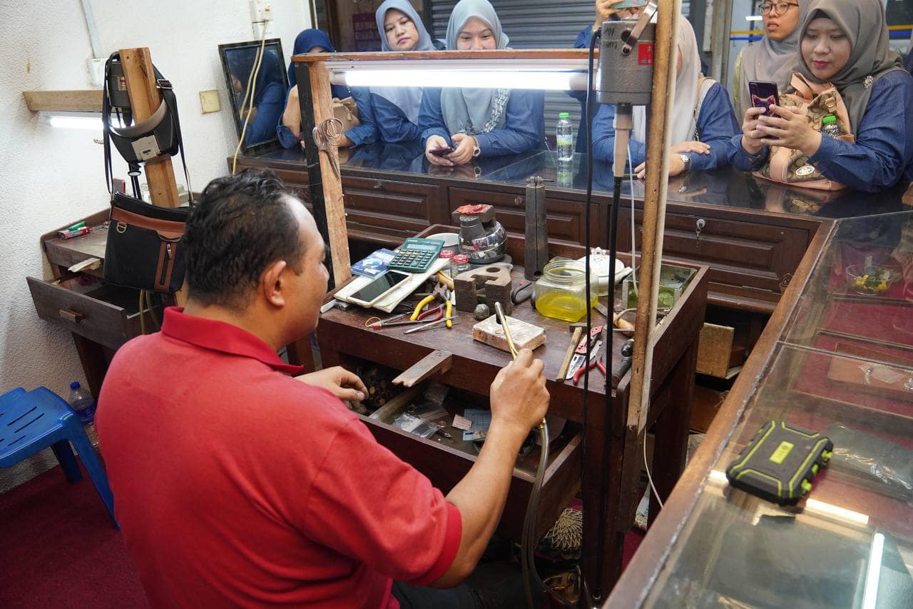19 orang peserta kursus telah mempelajari teknik asas pengujian dan ketulenan emas (densimeter, batu hitam & asid), lawatan pertukangan bagi melihat dengan lebih jelas cara membuat barang kemas.